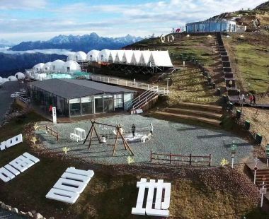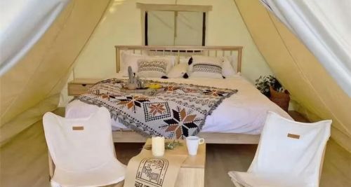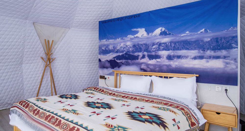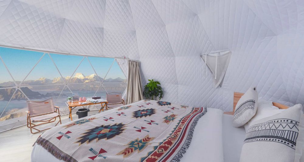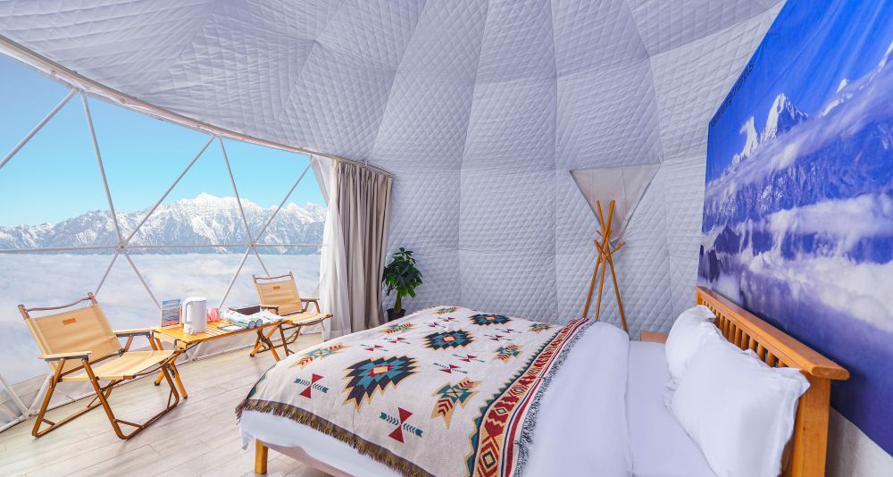 营地位于牛背山景区核心区,海拔约 3500 米,所有房型均直面贡嘎雪山。在房间内即可欣赏日照金山、冰川、雪山等壮丽 景观。所有帐篷房间都配有取暖机、电热毯、烧水壶、洗漱工具、两瓶矿泉水、 两张早餐券和一台制氧机。入住提供管家一对一血氧饱和度监测服务,为您和家 人的安全保驾护航。。